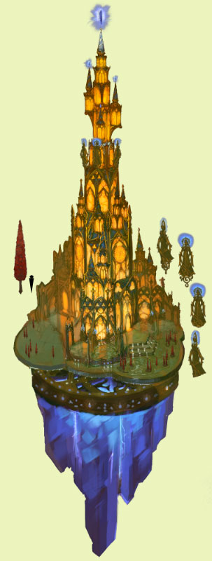 Замок эльфов: Внушительное сооружение, выстроенное на небольшом клочке уцелевшей суши. |