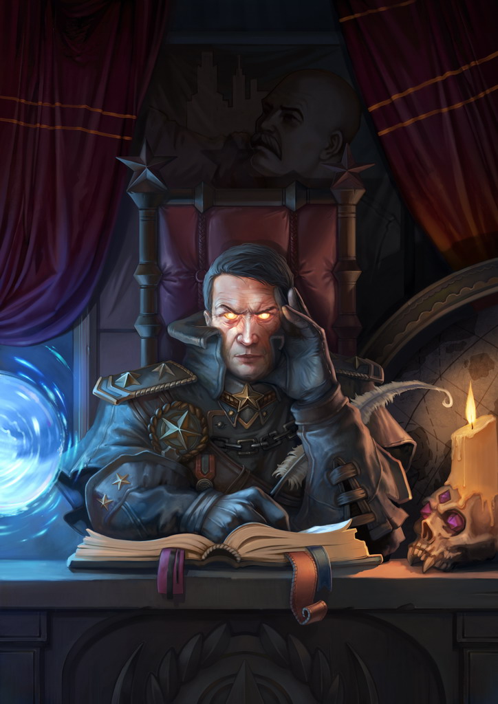 Хадаганский военачальник: Суровое лицо, звезды, карта мира и испепеляющий взгляд. |