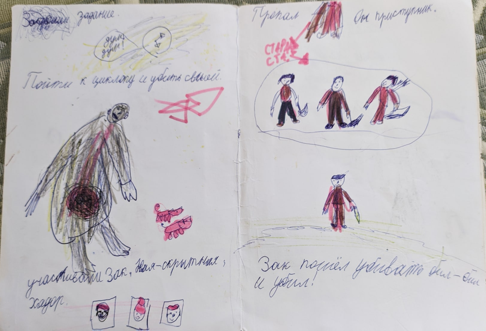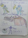 Наш читатель Сабина поделилась своими школьными рисунками в группе "Проклятые Земли" в соц.сети "ВКонтакте". Сабина - фанат "ПЗ" уже более 15 лет и влюбилась в игру еще в юном возрасте. Ее любимая история об игре, которую она поведала в кратком интервью, повествует о нелегкой судьбе оригинального диска. С "Проклятыми Землями" Сабину познакомил отец. Игра ему безумно нравилась, так что очередь поиграть до дочери доходила редко. Но все же ей периодически выпадал случай насладиться приключениями Зака. Игра была пройдена где-то за год. Интернета тогда толком не было, а значит модов, руководств и форумов с секретами - тоже. И вот в летние каникулы Сабина была отправлена на отдых, но взять с собой диск с любимой игрой ей не разрешили. Вернувшись всего через неделю, она обнаружила, что CD №2, нужного для запуска игры, в коробке просто нет. Мистическая история с расследованием и допросами окончилась официальной и слабо подкрепленной версией о том, что диск взорвался во время игры, пока Сабина отдыхала, а ее отец решил поиграть в "ПЗ". Лишь спустя много лет девушка смогла найти оригинальную игру, попробовав до этого "Затерянных в Астрале" и не впечатлившись ей. Вот такая детективная история. А нам остаются прекрасные рисунки, сделанные Сабиной в первом классе. В них запечатлены фрагменты торговли с Бабуром, похода на циклопа и другие моменты из игры.